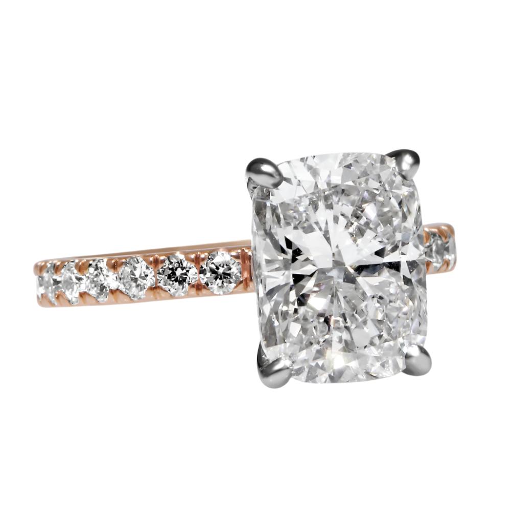 14k Rose Gold 3.50ct Lab Grown Elongated Cushion Diamond Band Engagement Ring