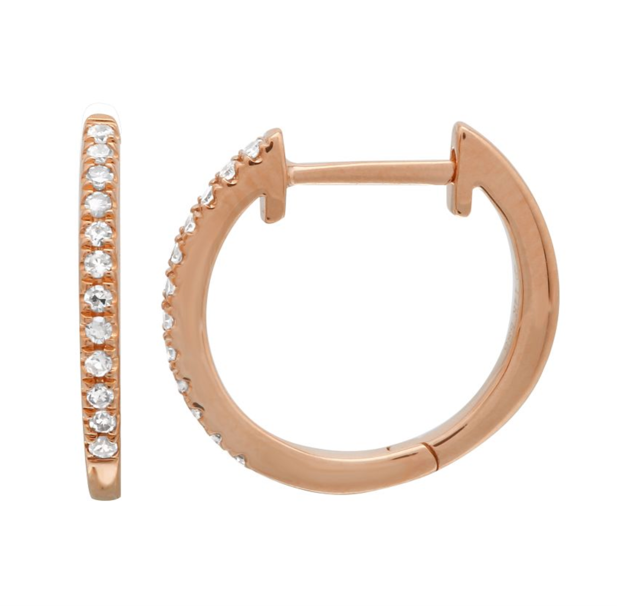 14k Rose Gold Diamond Huggie Earrings 13mm