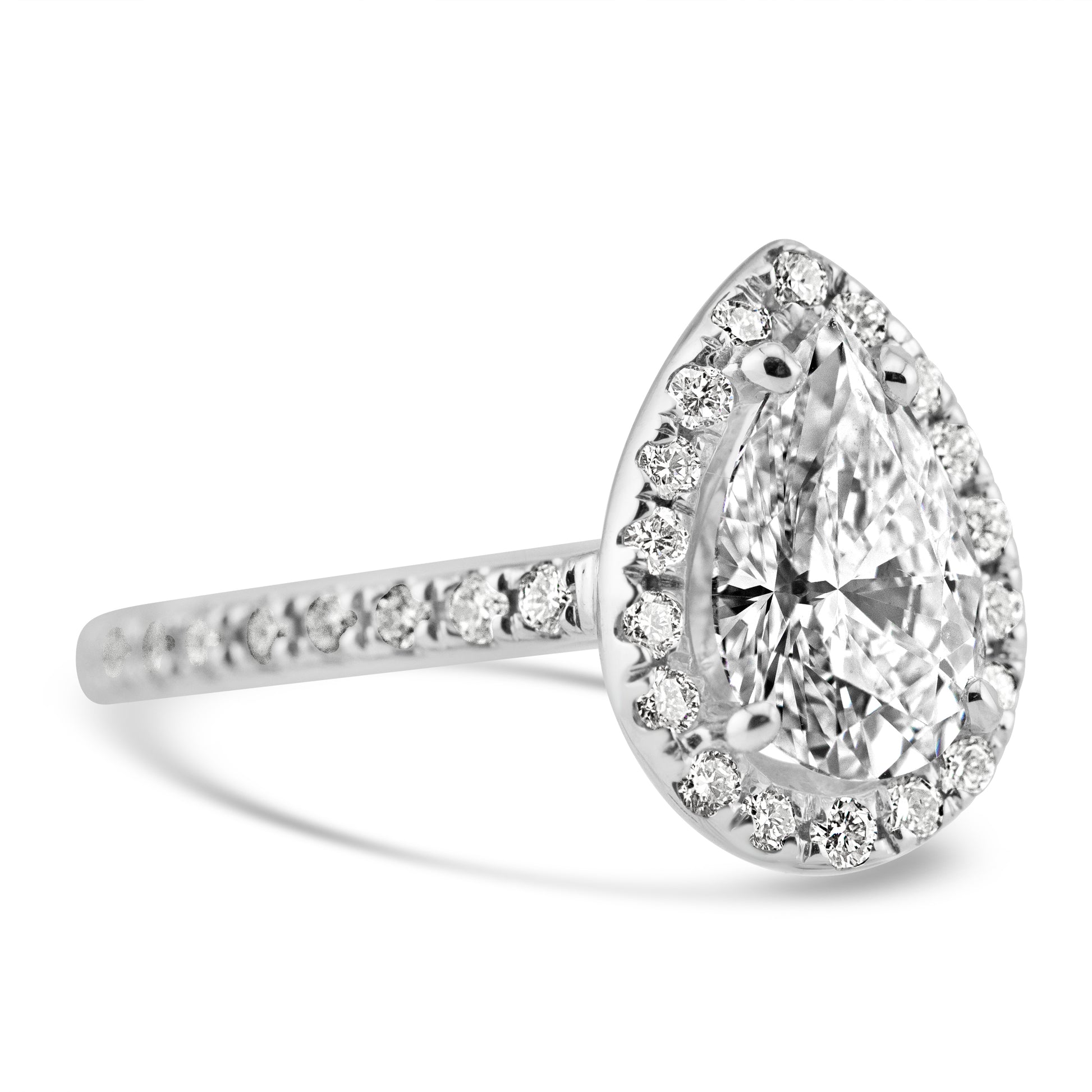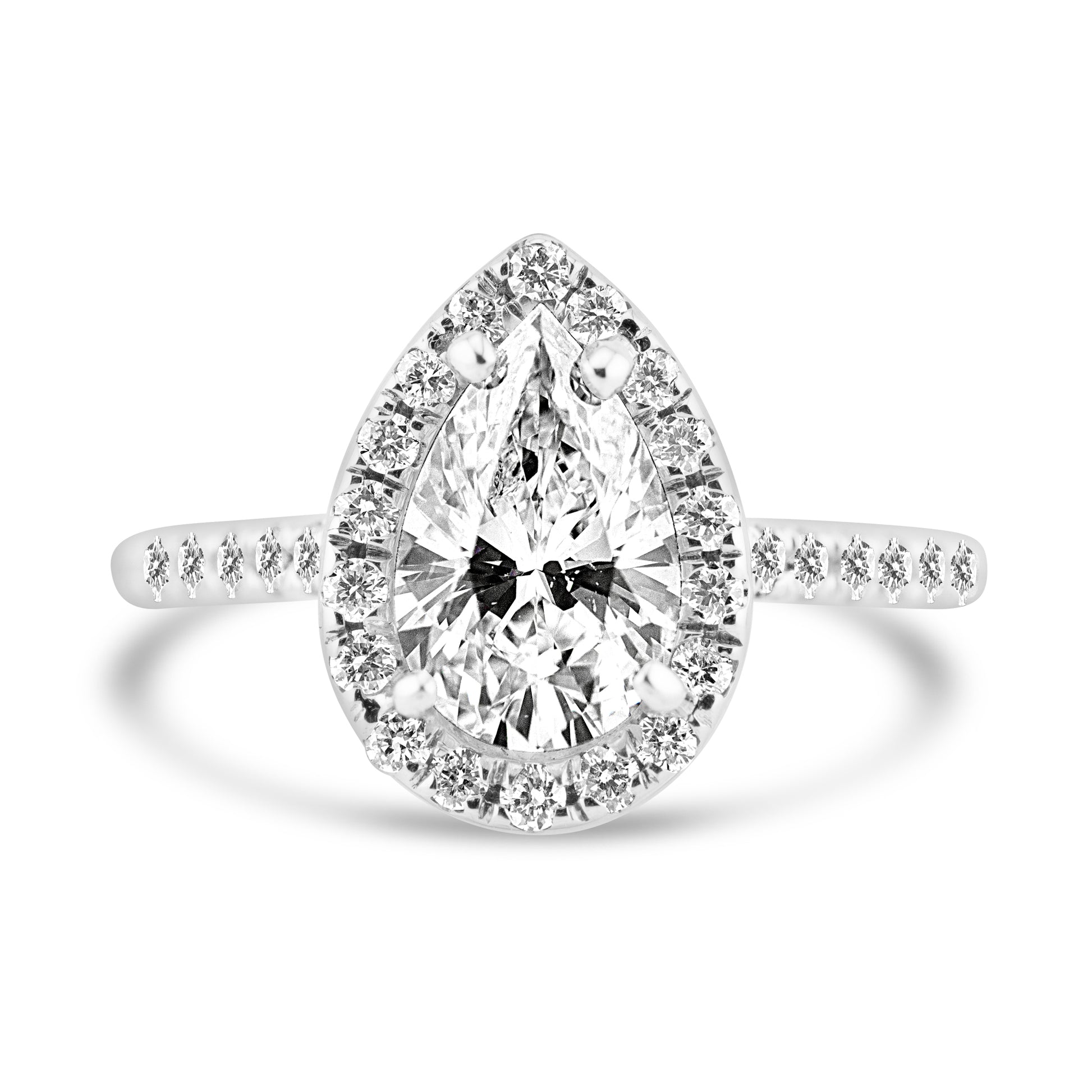 14k White Gold 1.29ct Pear Diamond Halo Engagement Ring