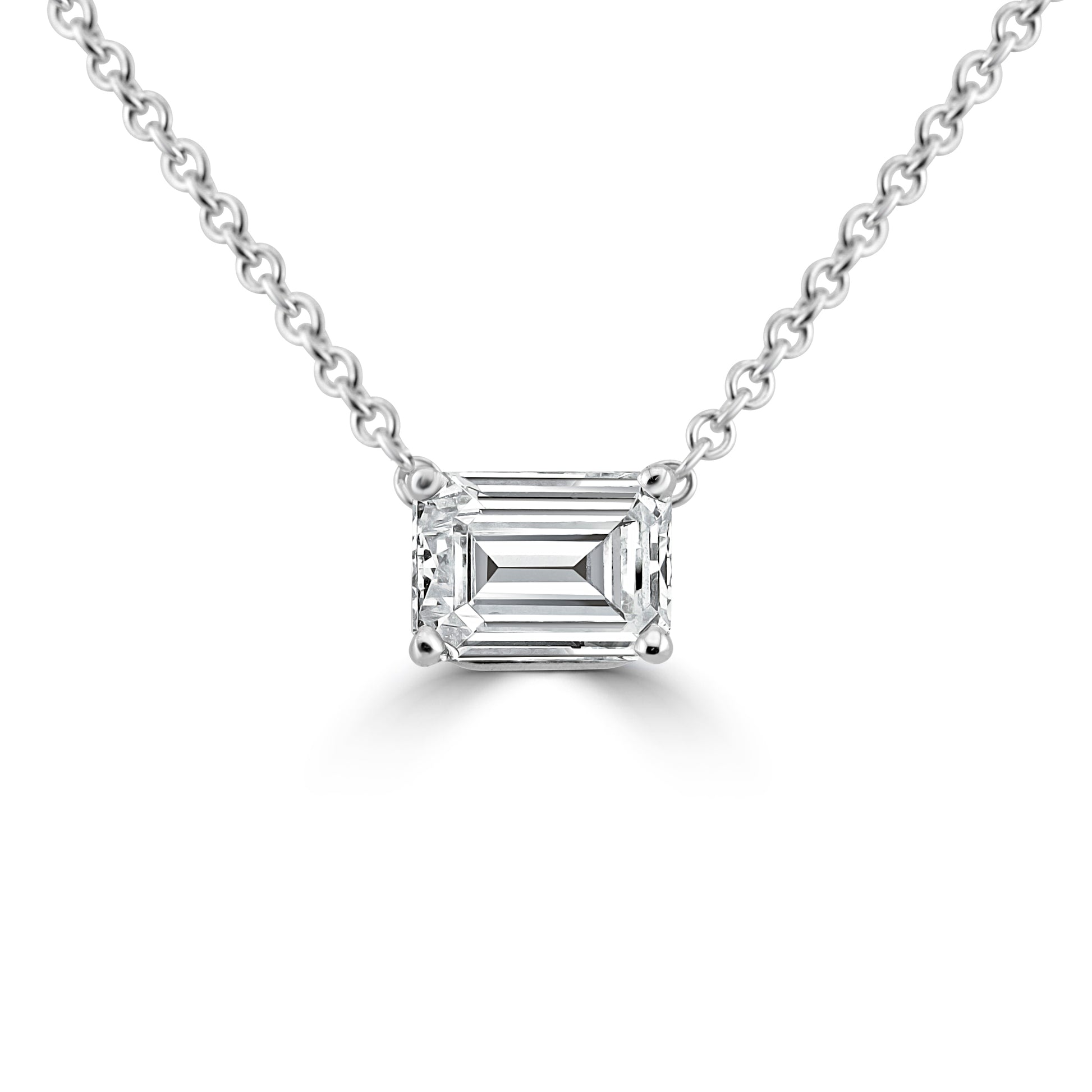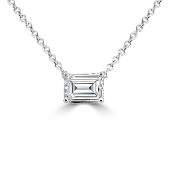14k White Gold 1.50ct Lab Grown Emerald Diamond Solitaire Necklace