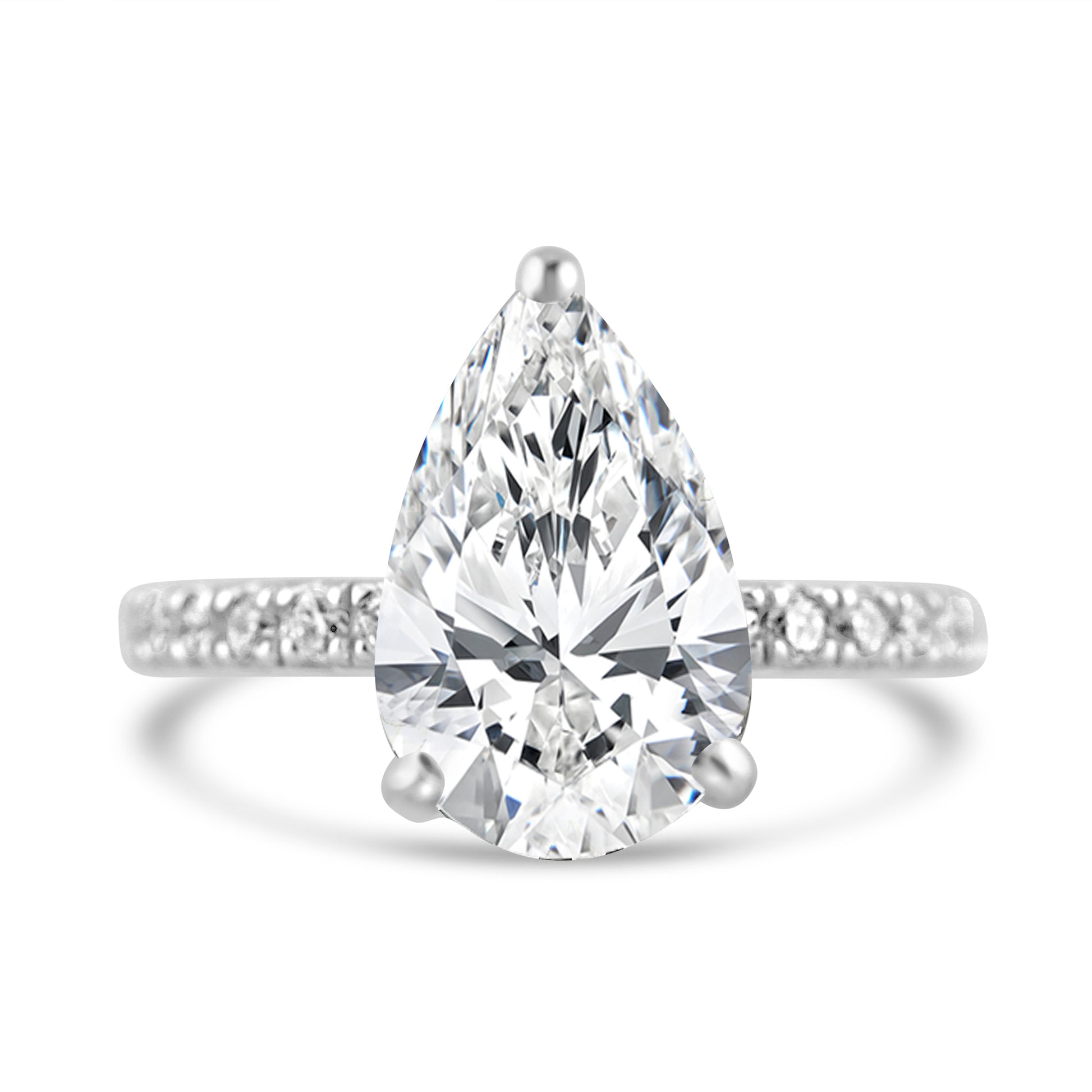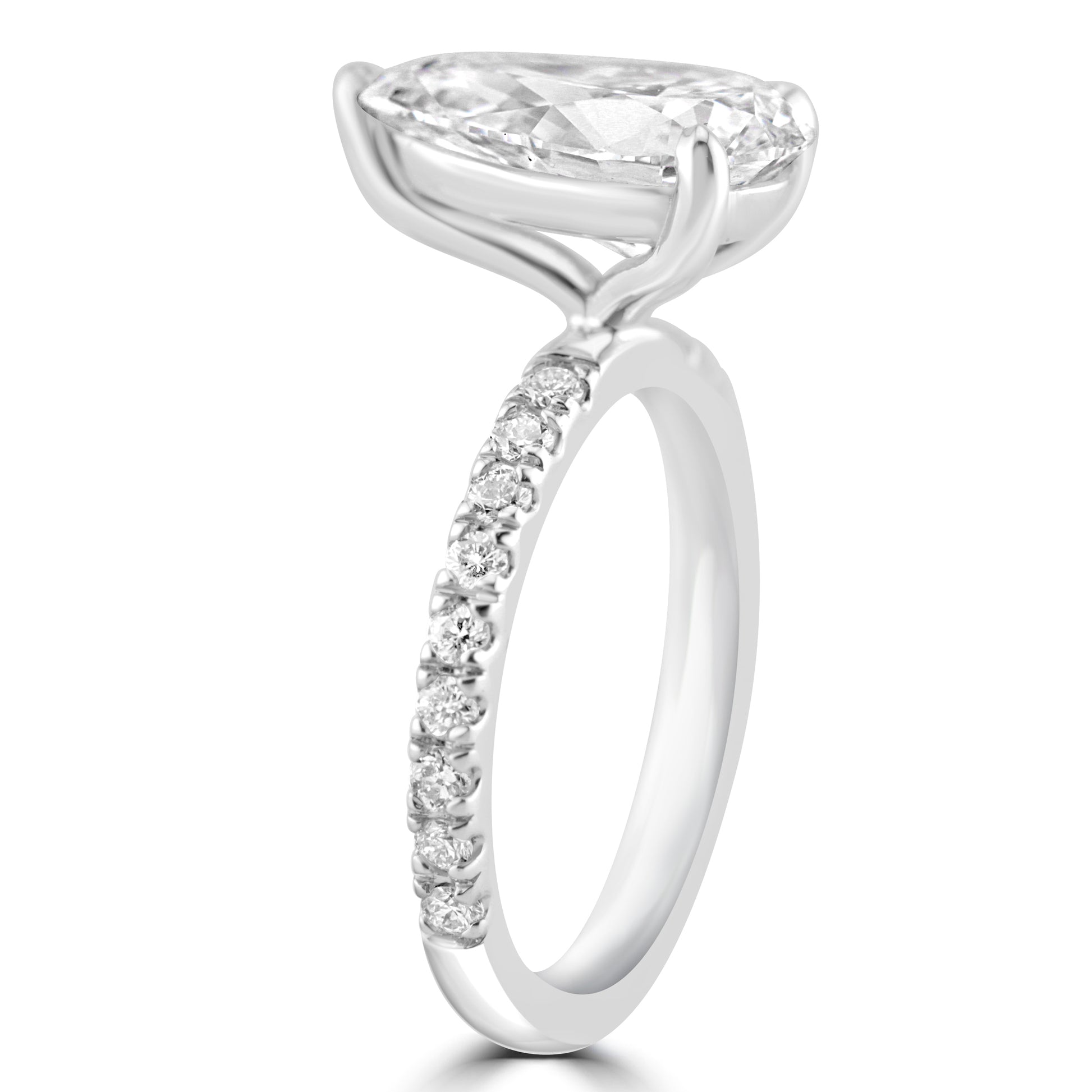 14k White Gold 2.50ct Lab Grown Pear Diamond Band Engagement Ring