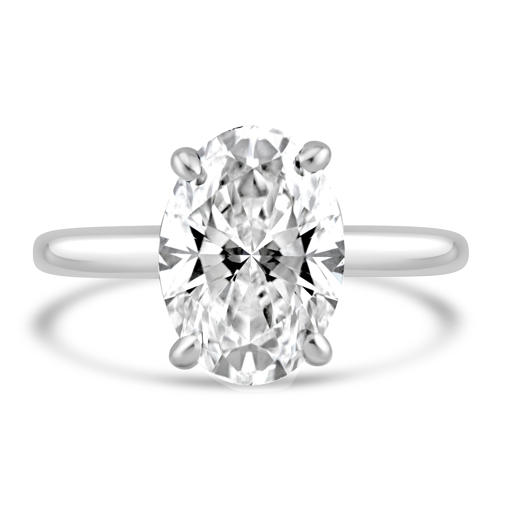 14k White Gold 3.00ct Lab Grown Oval Diamond Solitaire Engagement Ring