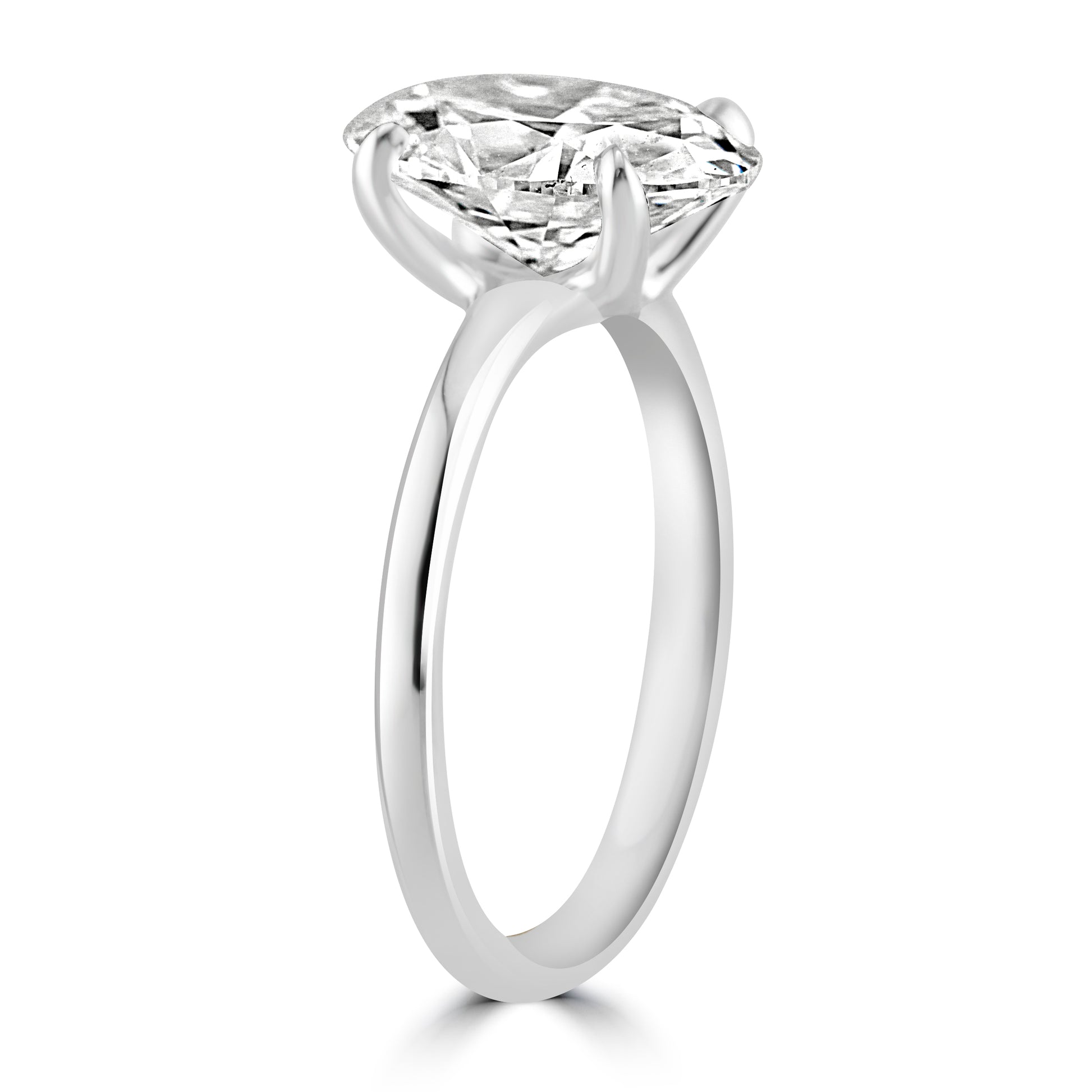 14k White Gold 3.20ct Lab Grown Oval Diamond Solitaire Engagement Ring