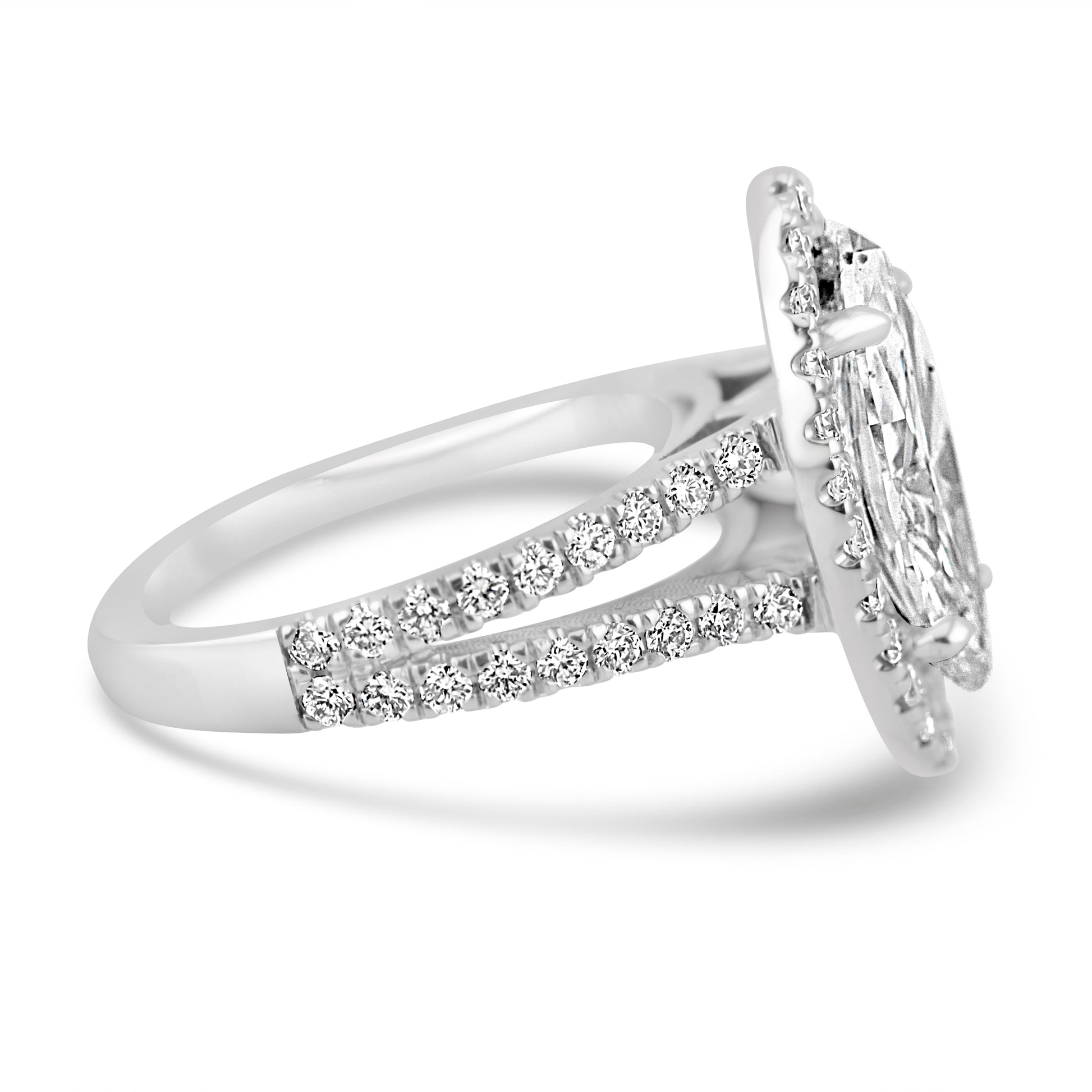 - 14K White Gold Split Shank Diamond Halo Setting, Apx. .75ctw
