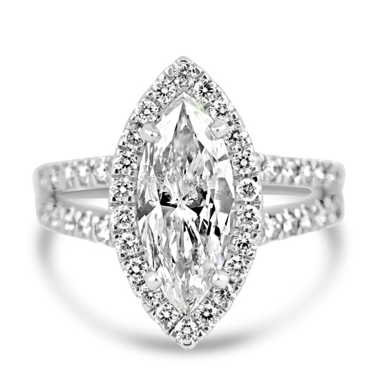 14k White Gold 1.85ct Marquise Diamond Halo Engagement Ring