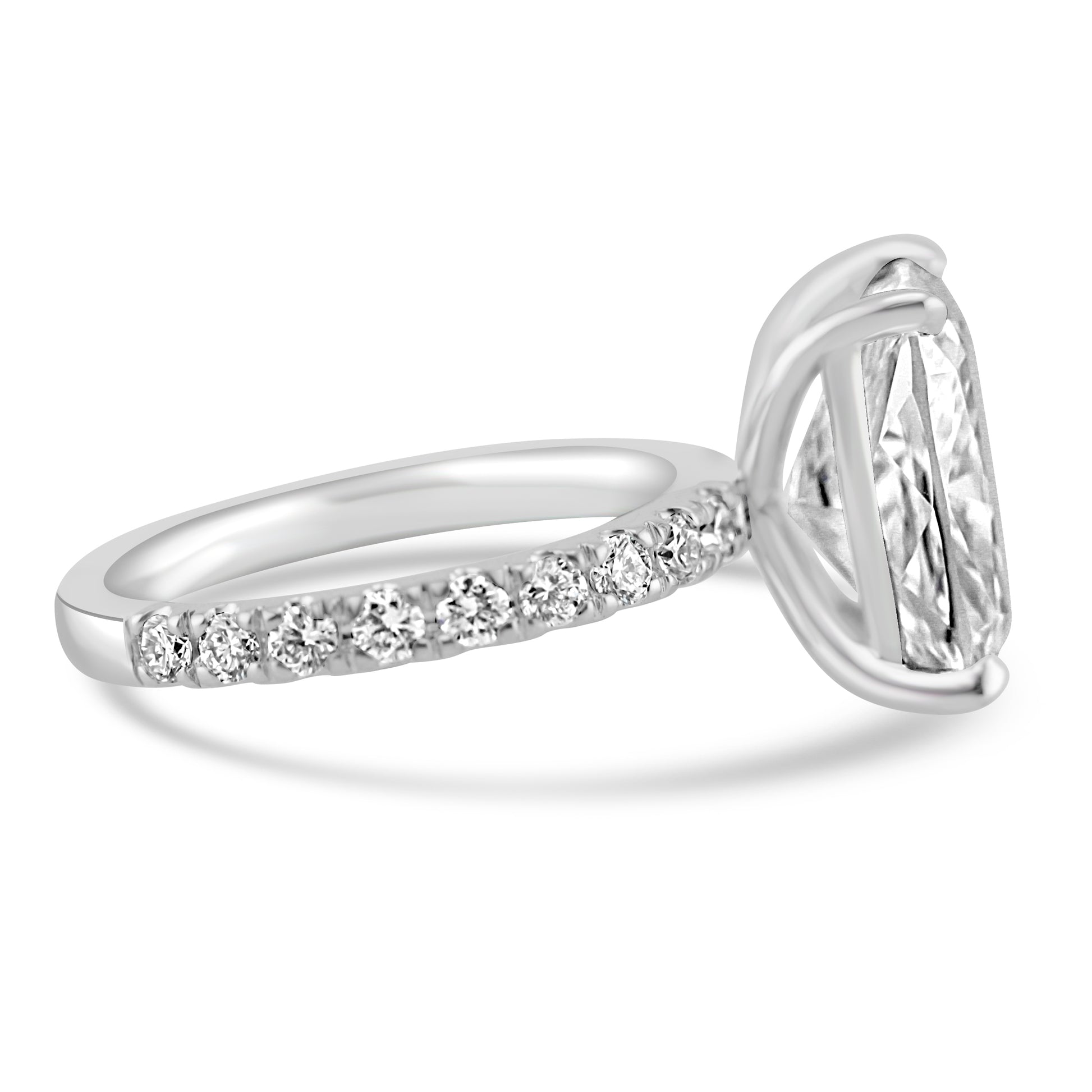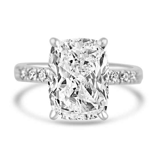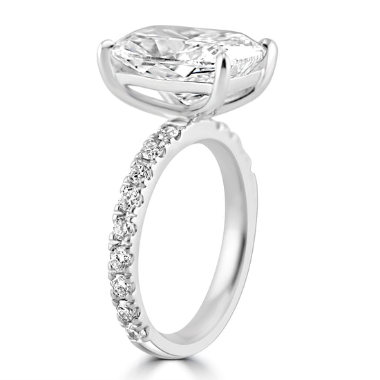 14k White Gold 4.00ct Lab Grown Elongated Cushion Diamond Band Engagement Ring