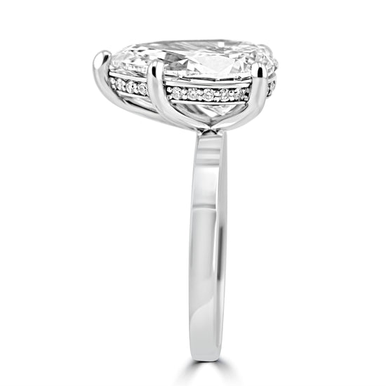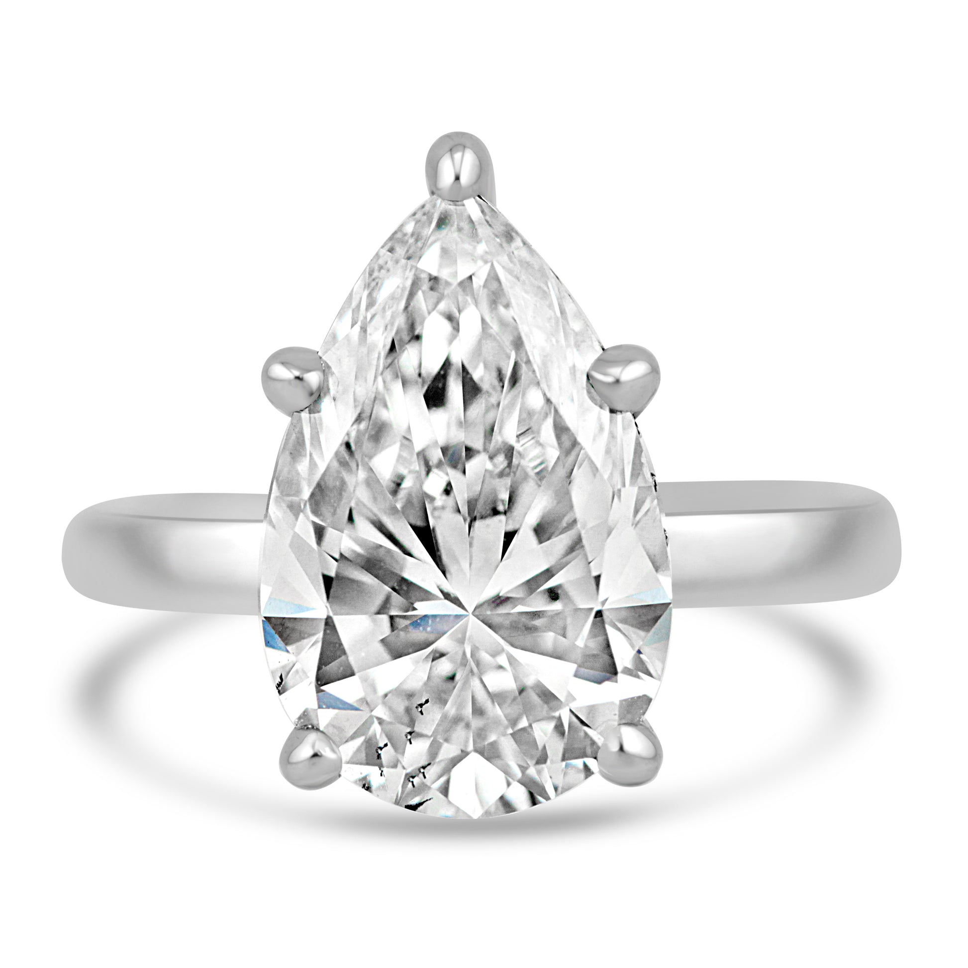 14k White Gold 5.00ct Lab Grown Pear Diamond Invisible Halo Solitaire Engagement Ring