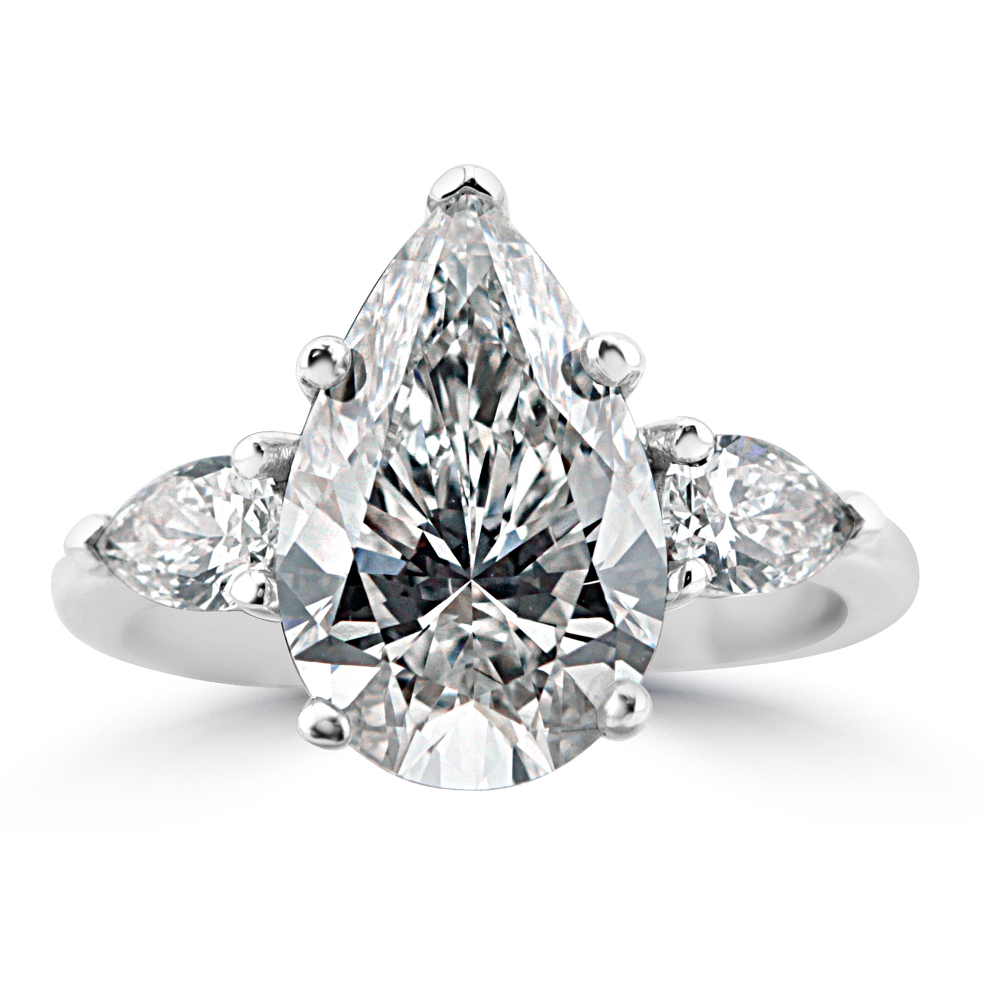 18k White Gold 4.30ctw Three Stone Lab Grown Pear Diamond Engagement Ring