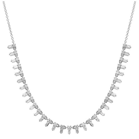 14k White Gold Baguette Diamond Chain Necklace 1.15ctw