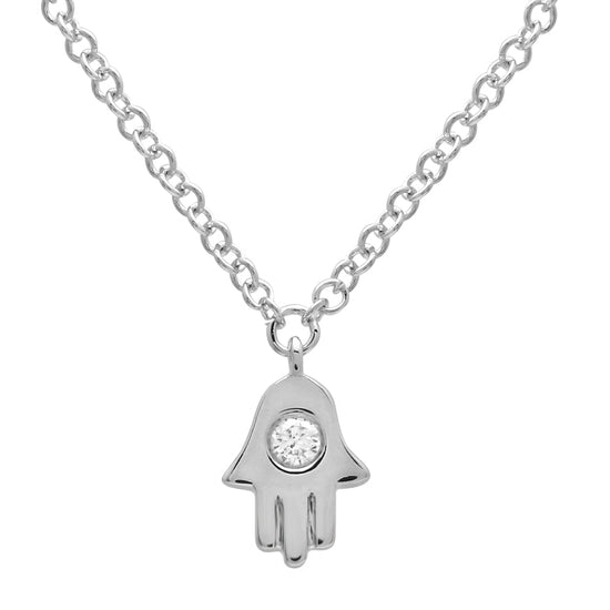 14k White Gold Mini Diamond Hamsa Necklace