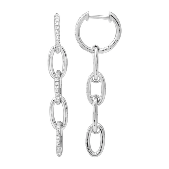 14k White Gold Link Dangling Diamond Earrings