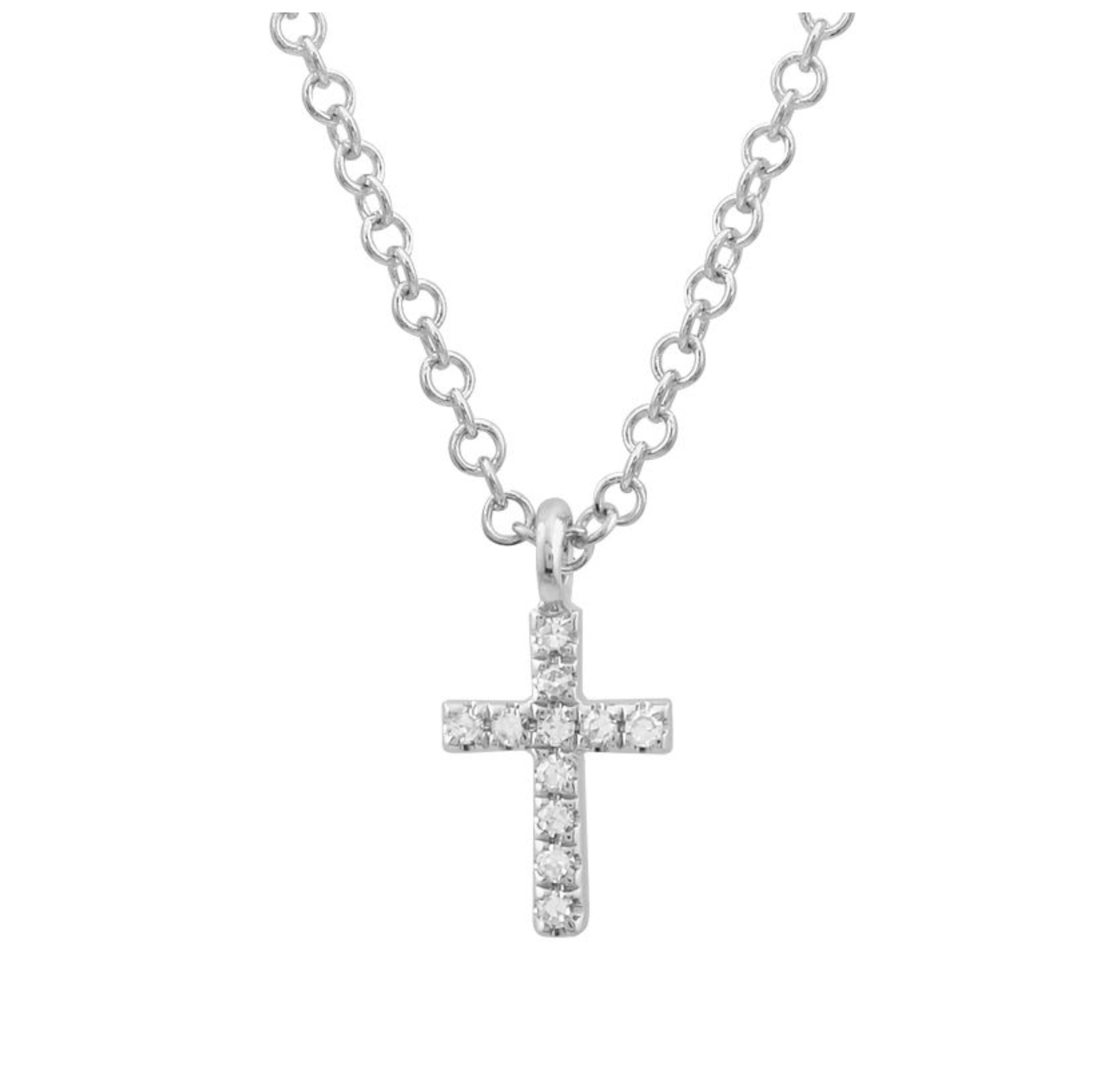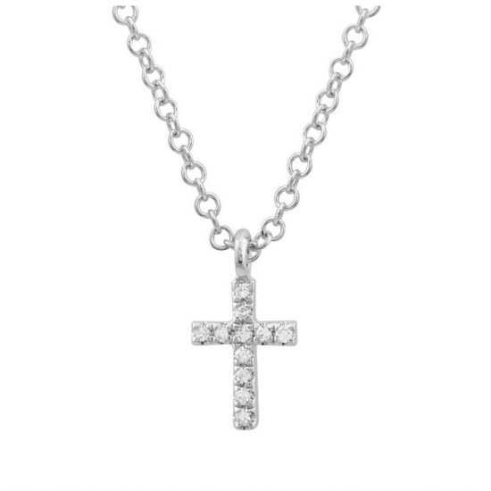 14k White Gold Mini Cross Diamond Necklace 7mm