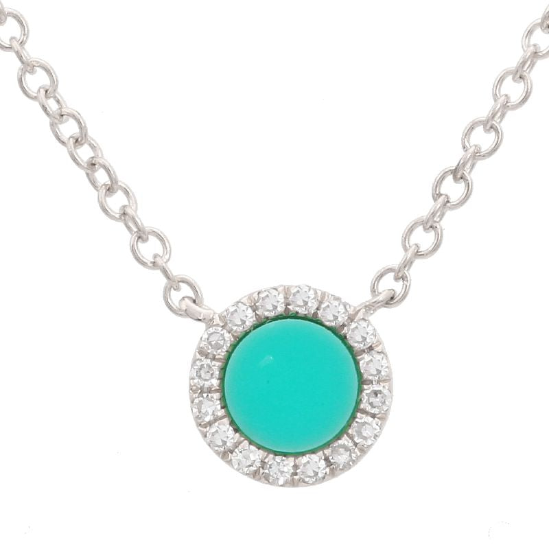 14k White Gold Mini Turquoise Diamond Circle Necklace