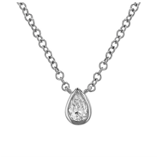 14k White Gold Pear Diamond Bezel Solitaire Necklace .15ctw