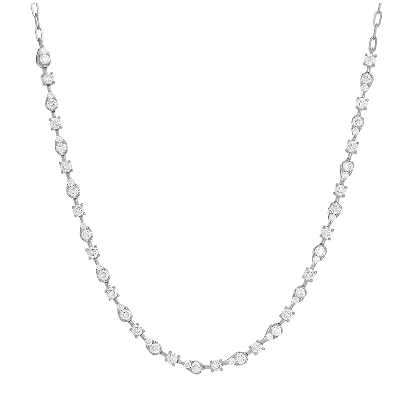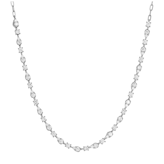 14k White Gold Station Diamond Chain Choker Necklace 1.25ctw