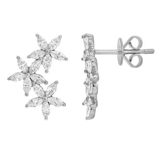 14k White Gold Trio Flower Diamond Stud Earrings .85ctw