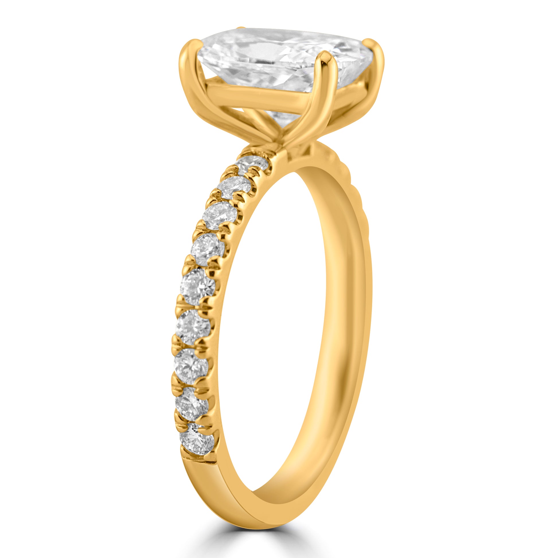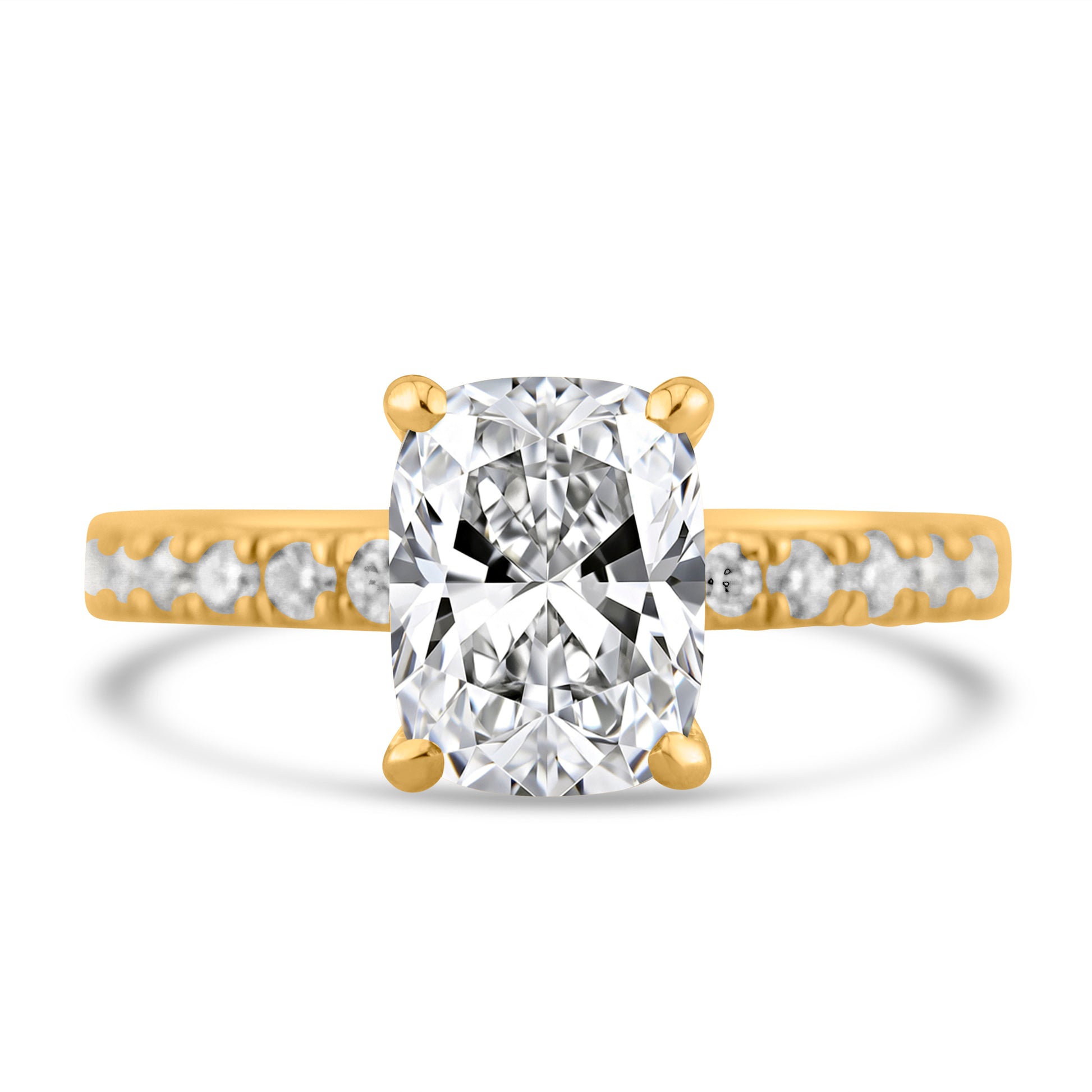 14k Yellow Gold 1.80ct Lab Grown Elongated Cushion Diamond Band Engagement Ring
