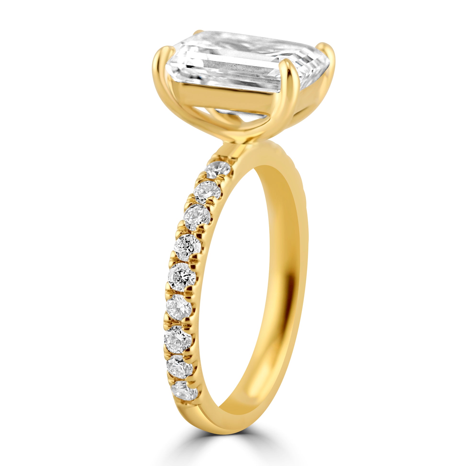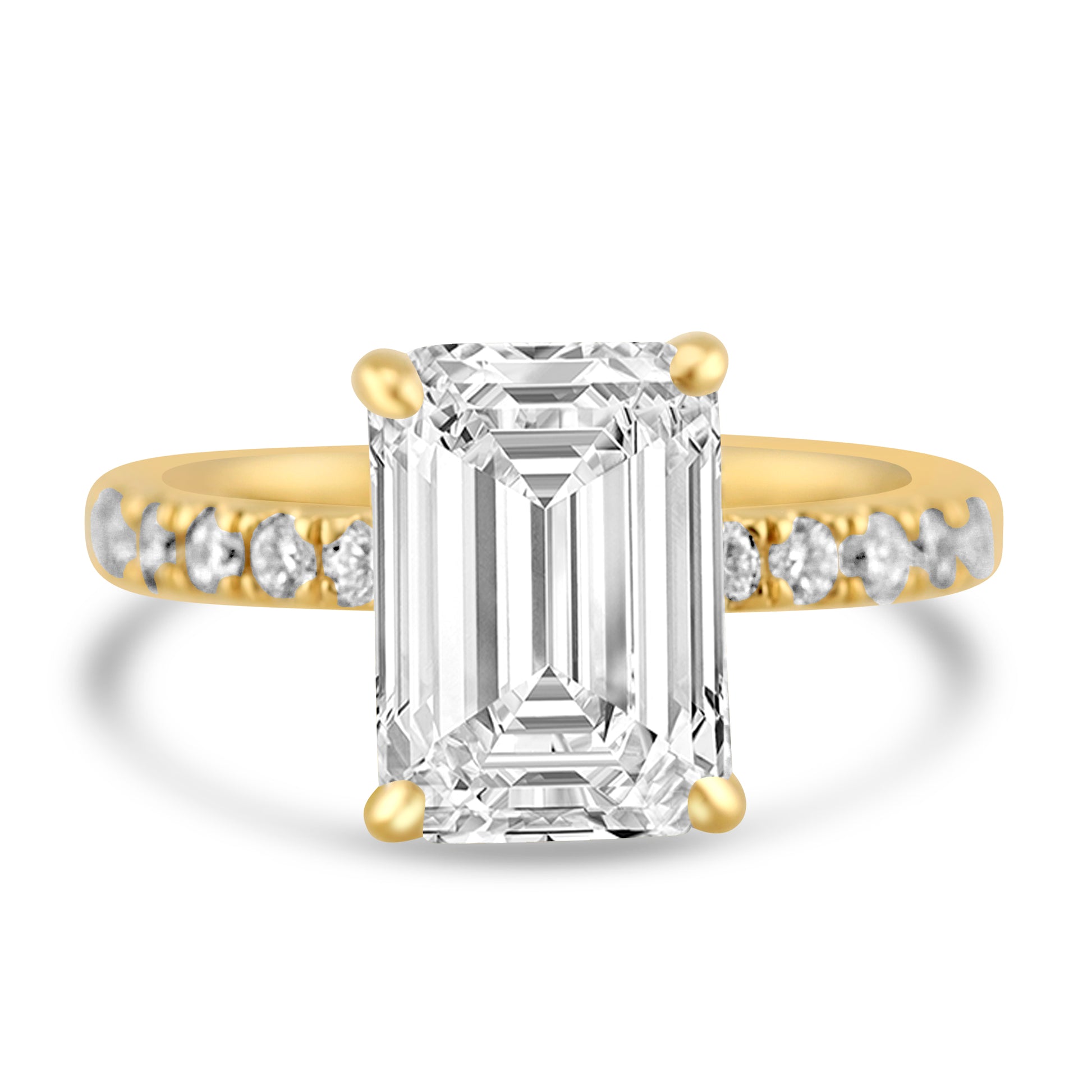 14k Yellow Gold 3.20ct Lab Grown Emerald Diamond Band Engagement Ring