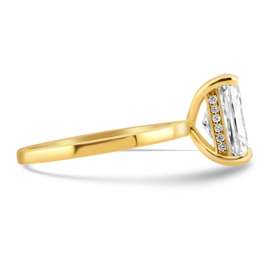 14k Yellow Gold 3.50ct Lab Grown Elongated Radiant Diamond Invisible Halo Solitaire Engagement Ring