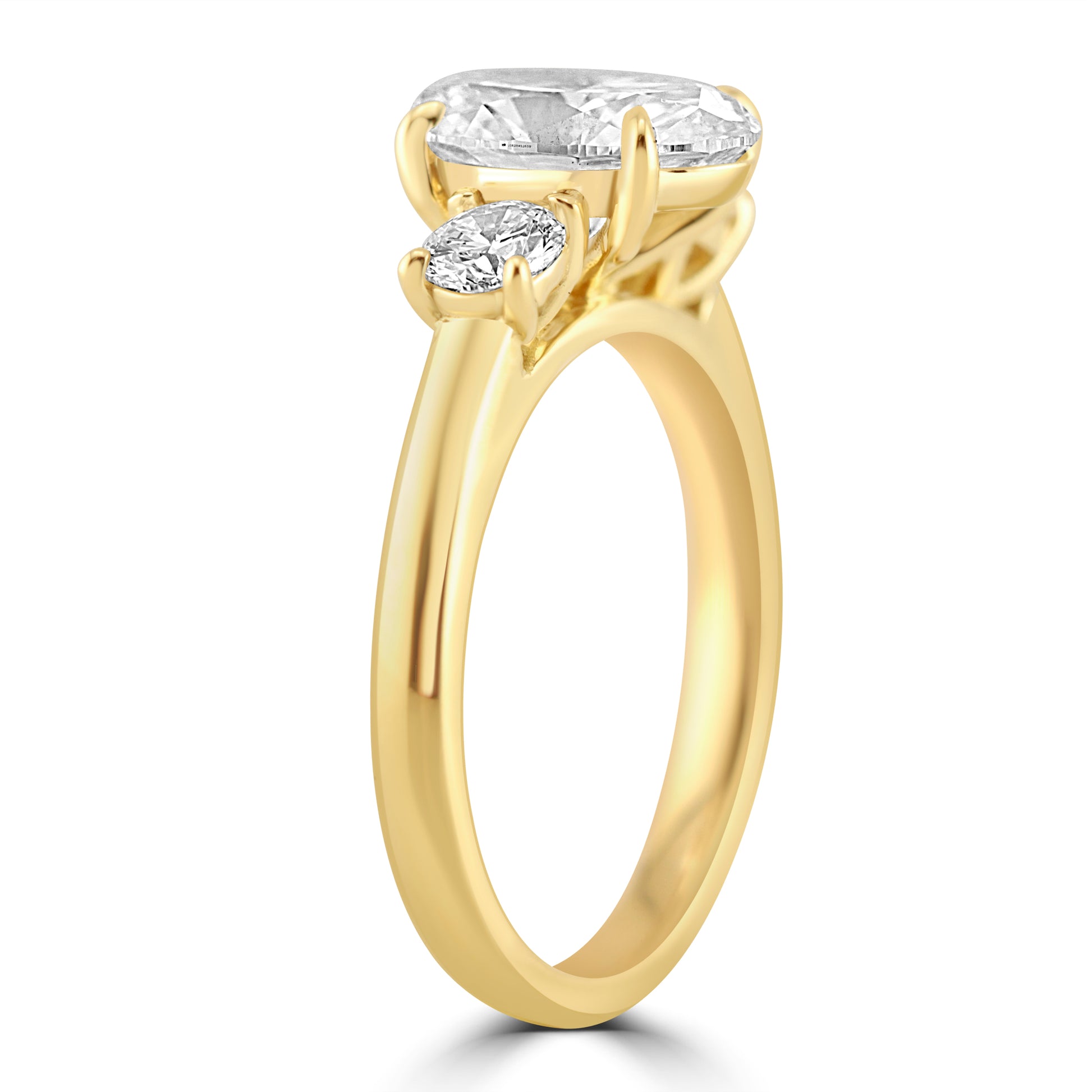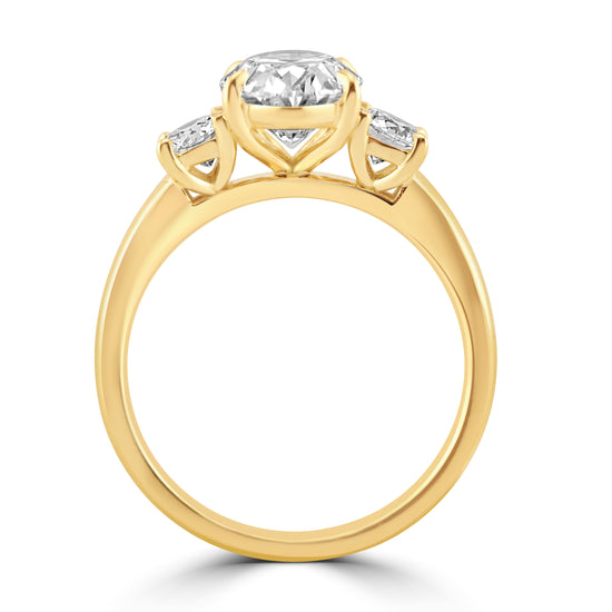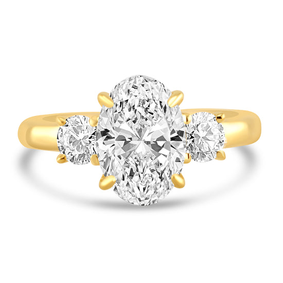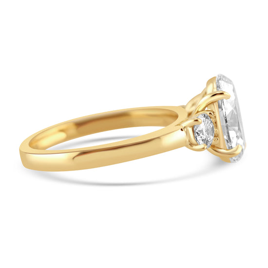 14k Yellow Gold 3.50ctw Three Stone Lab Grown Oval Diamond Engagement Ring