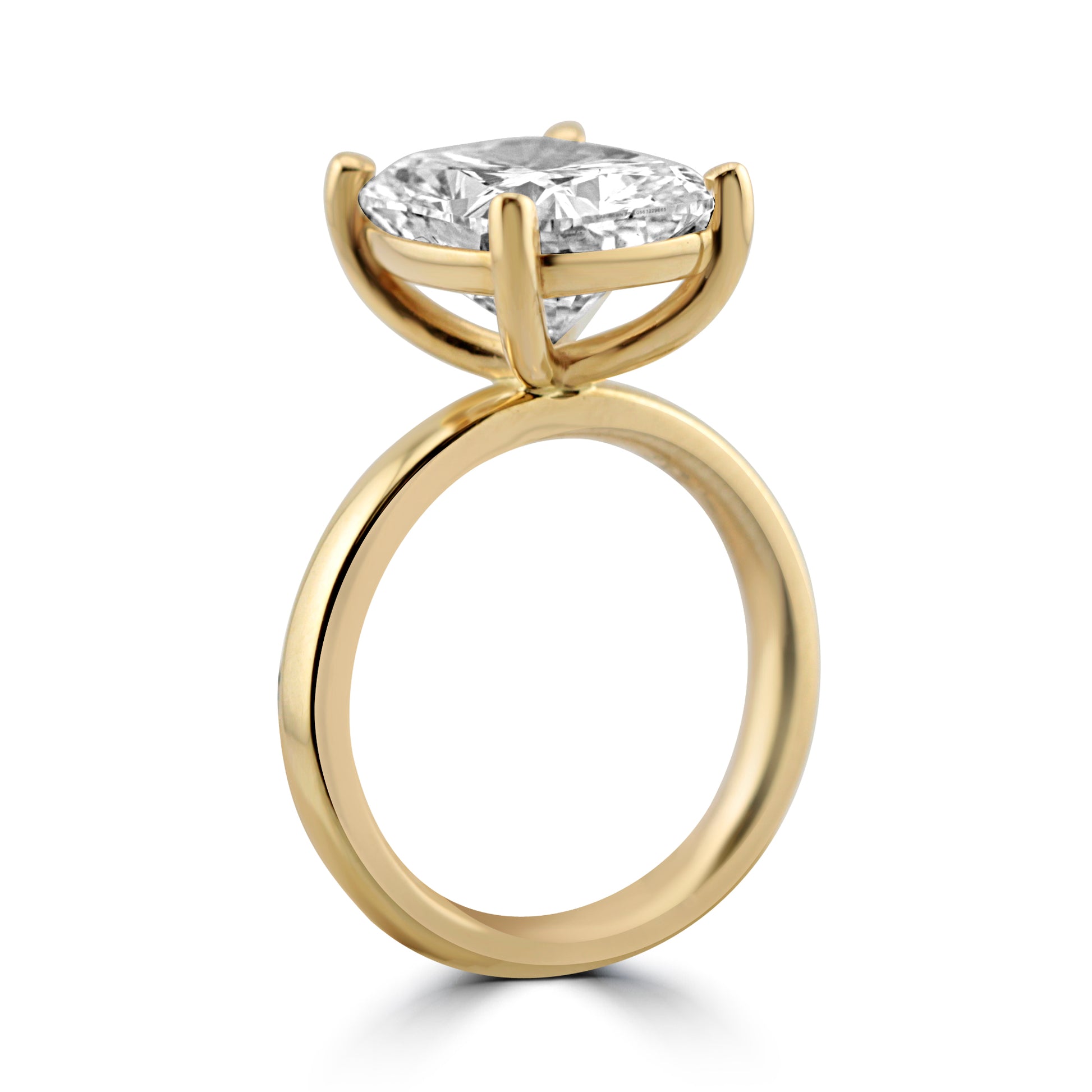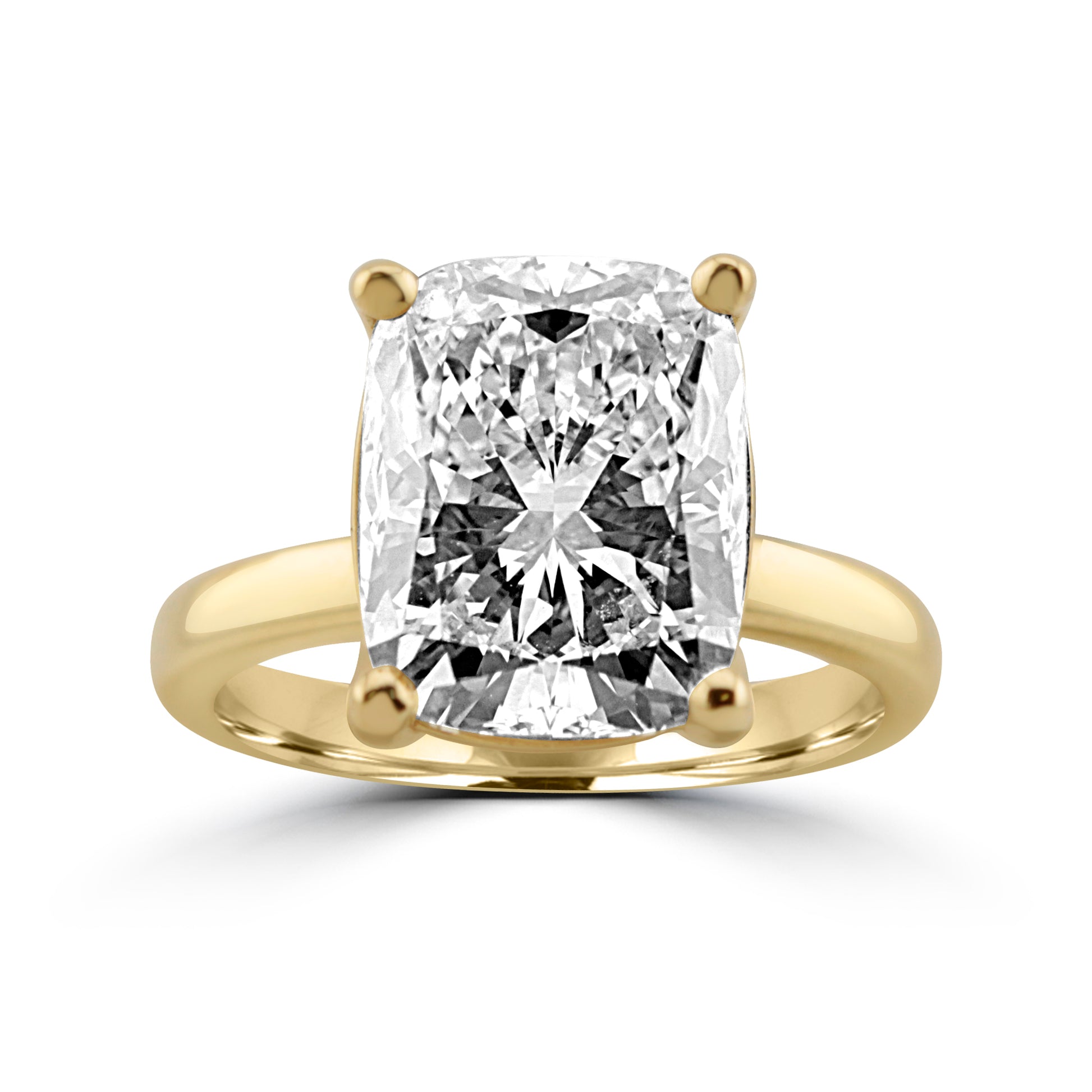 14k Yellow Gold 4.20ct Lab Grown Elongated Cushion Diamond Solitaire Engagement Ring