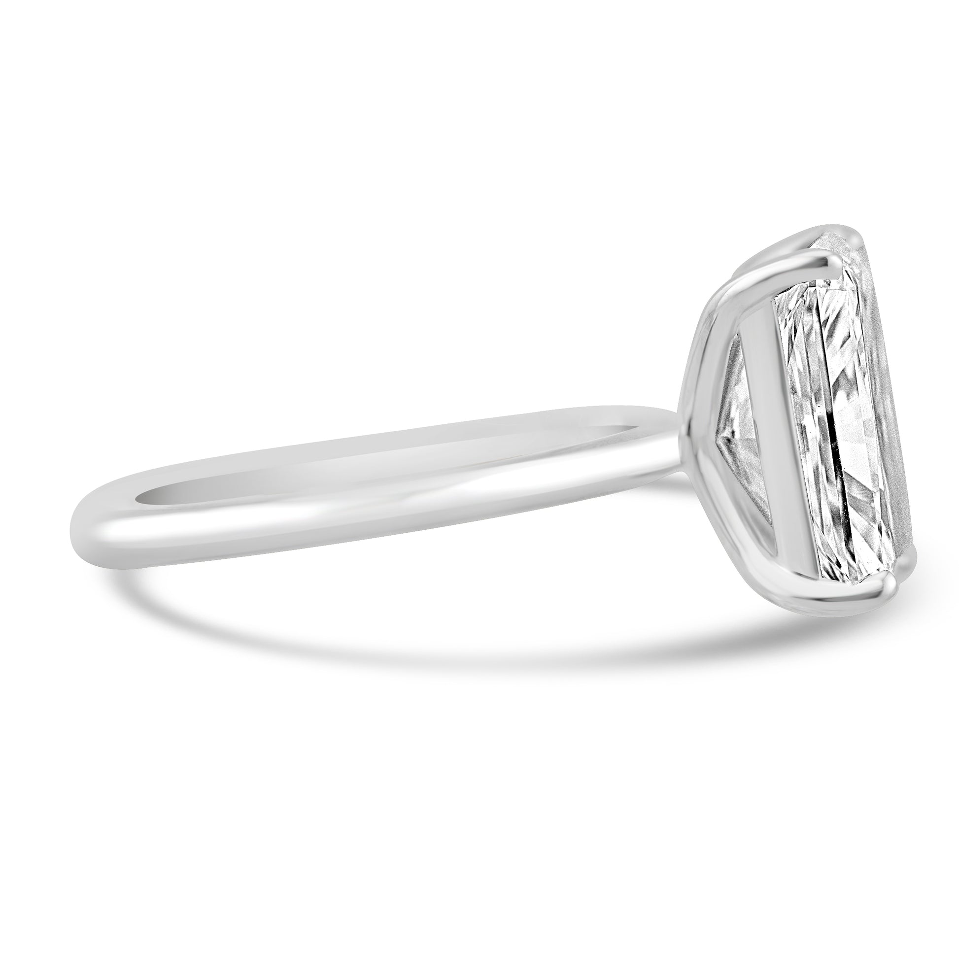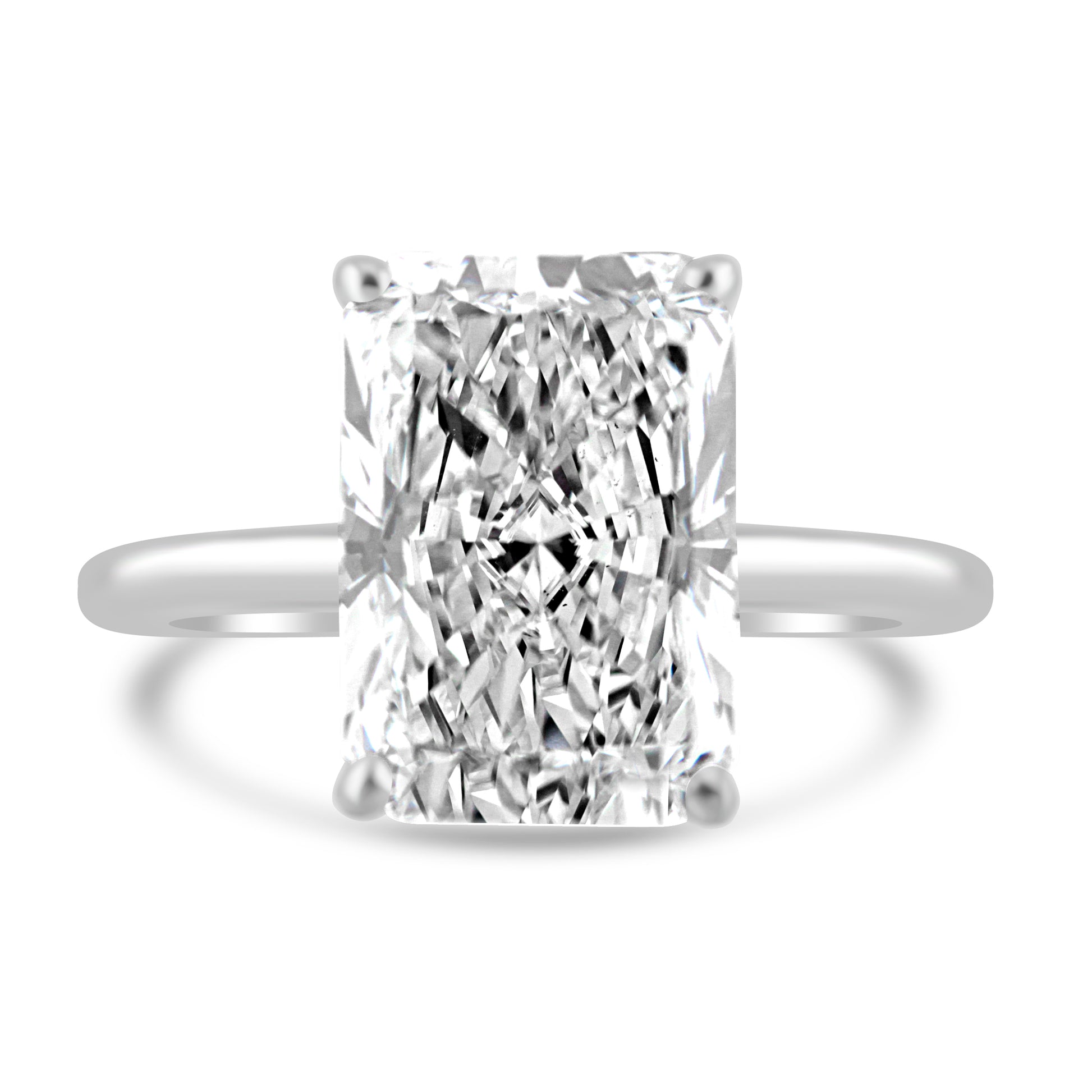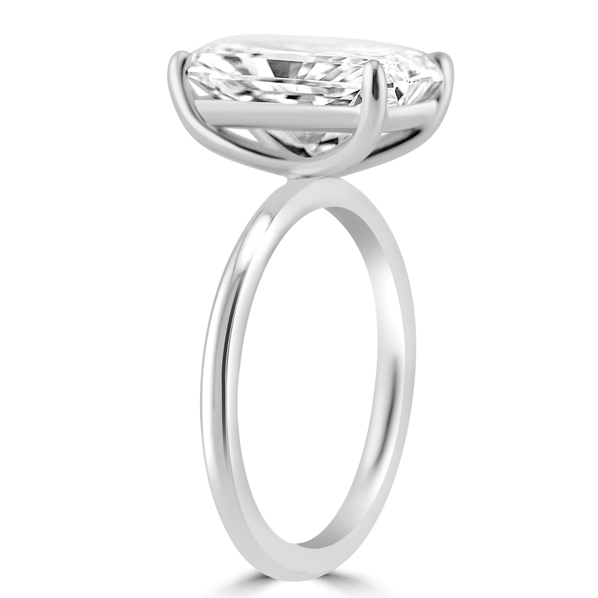 14k White Gold 4.00ct Lab Grown Elongated Radiant Diamond Solitaire Engagement Ring
