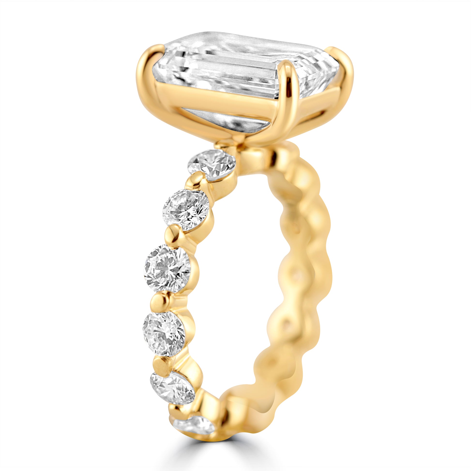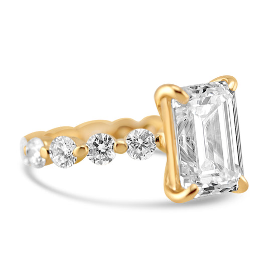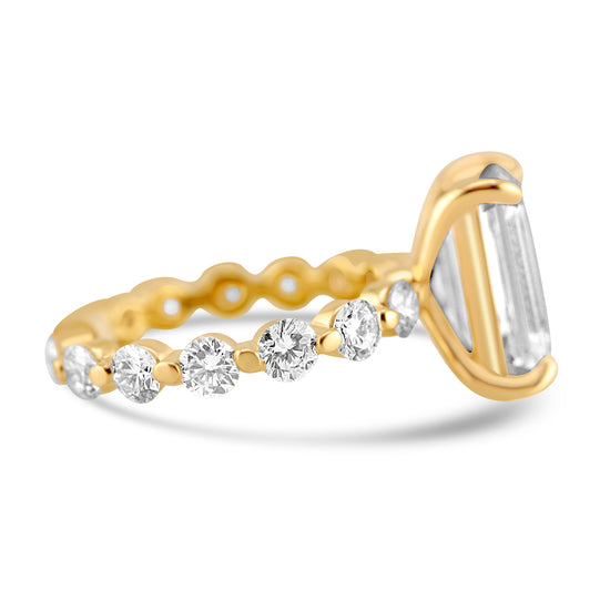 14k Yellow Gold 4.00ct Lab Grown Emerald Diamond Band Engagement Ring