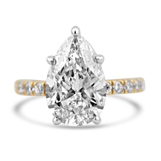 14k Yellow Gold 4.00ct Lab Grown Pear Diamond Band Engagement Ring