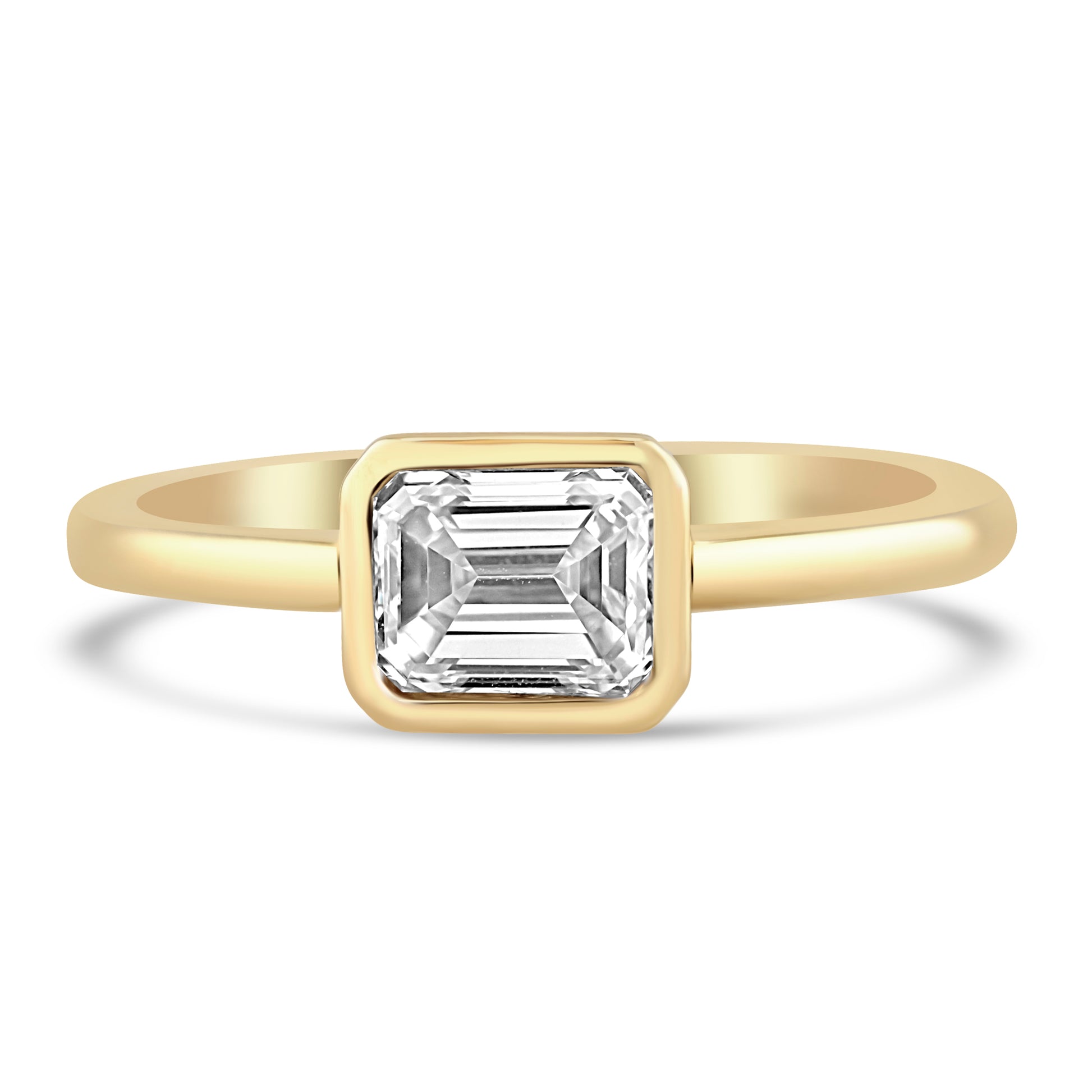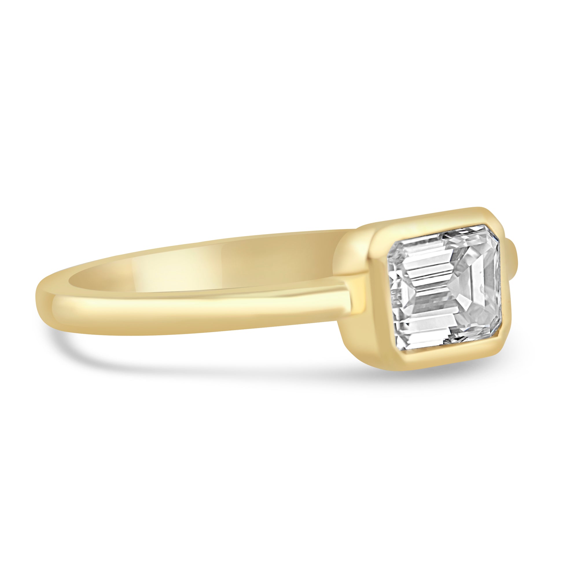 14k Yellow Gold .85ct Lab Grown Emerald Diamond Bezel Engagement Ring
