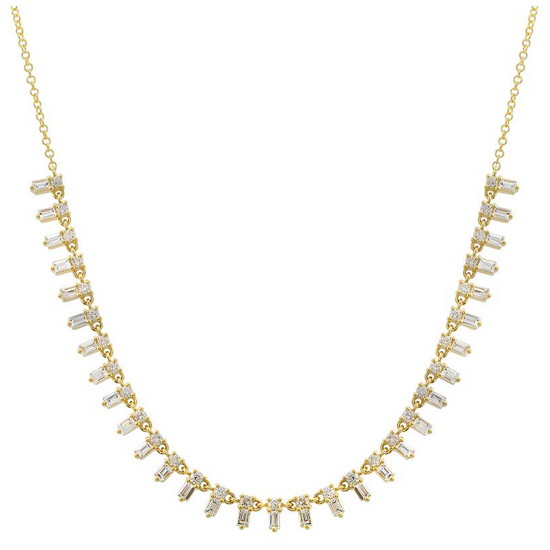 14k Yellow Gold Baguette Diamond Chain Necklace 1.15ctw