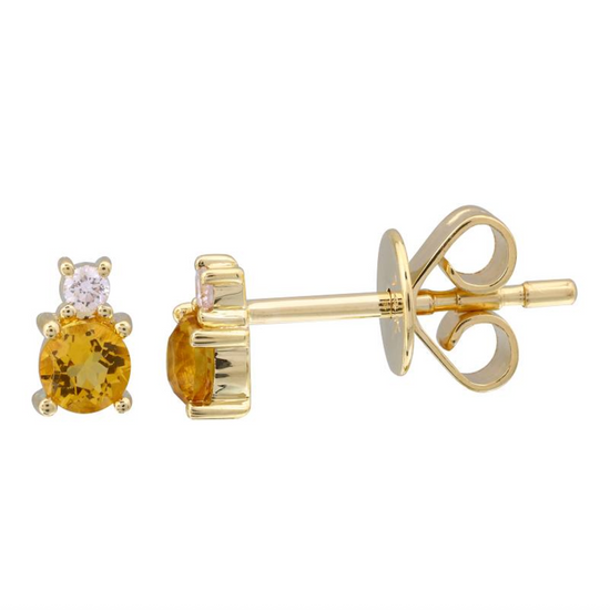 14k Yellow Gold Citrine Diamond Stud Earrings .25ctw