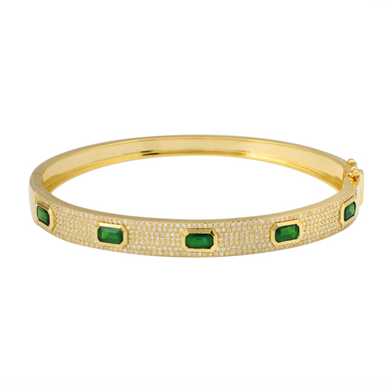 14k Yellow Gold Emerald Diamond Bangle 2.00ctw