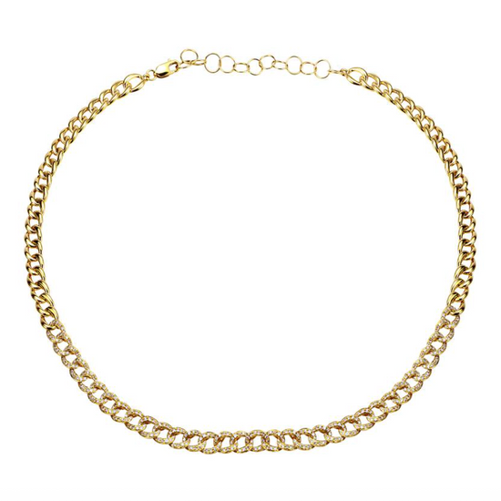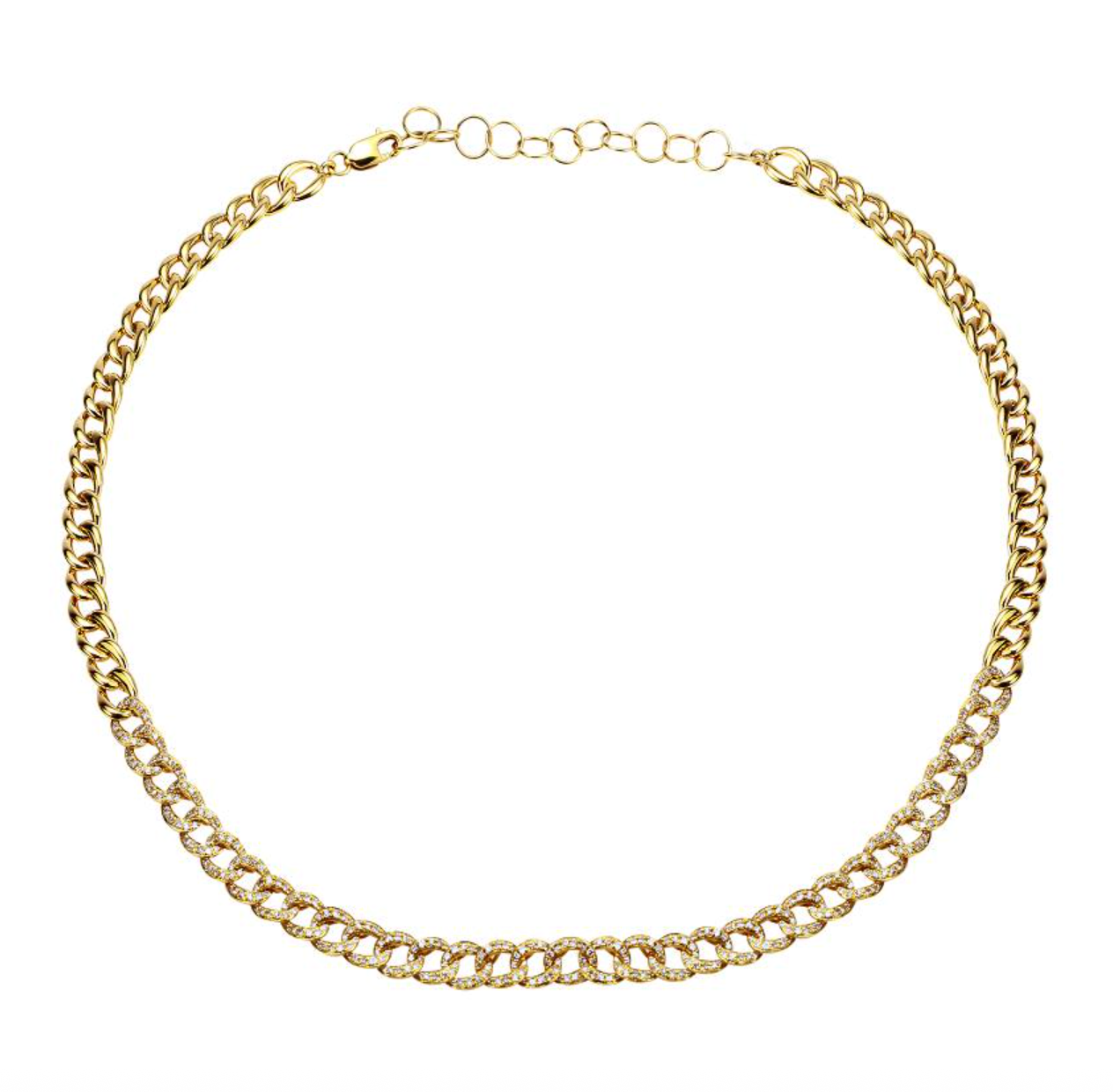 14k Yellow Gold Diamond Cuban Link Choker Necklace .90ctw