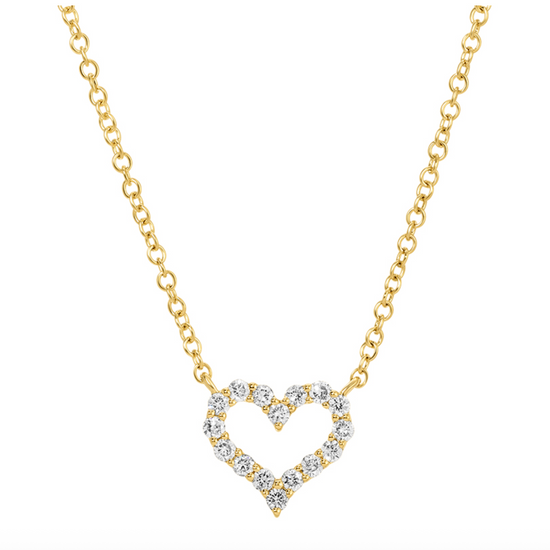 14k Yellow Gold 8mm Mini Diamond Open Heart Necklace .15ctw