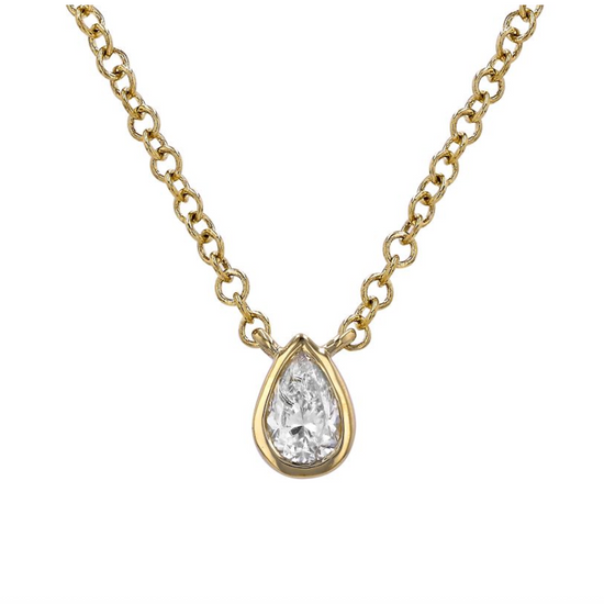 14k Yellow Gold Pear Diamond Bezel Solitaire Necklace .15ctw