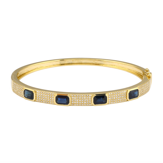 14k Yellow Gold Sapphire Diamond Bangle 1.00ctw