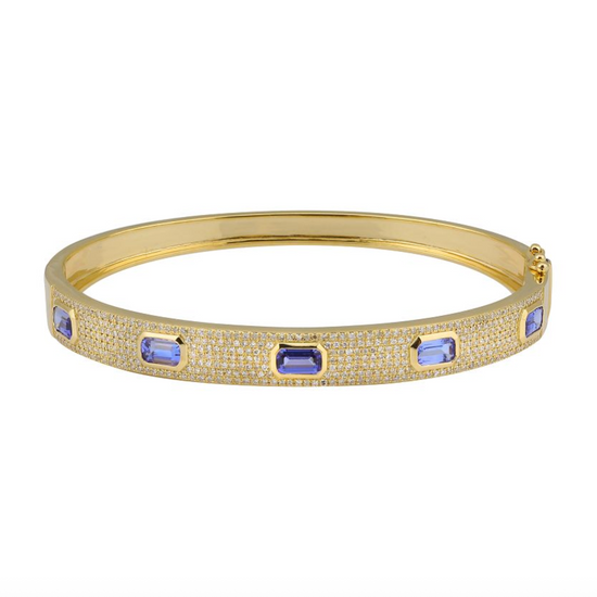 14k Yellow Gold Tanzanite Diamond Bangle 1.35ctw