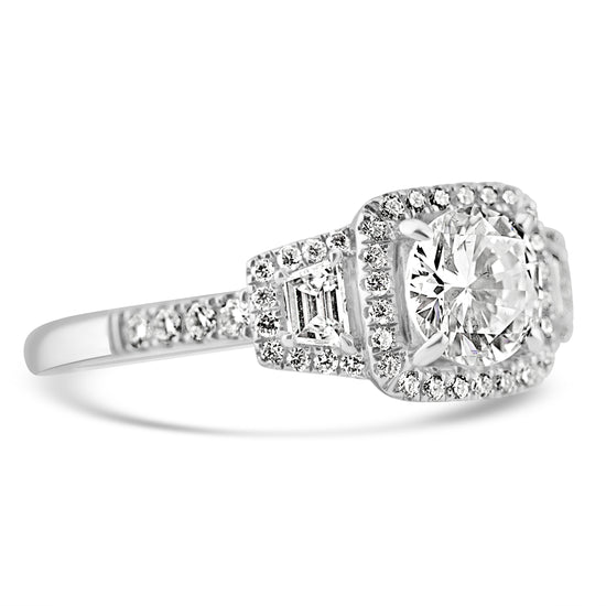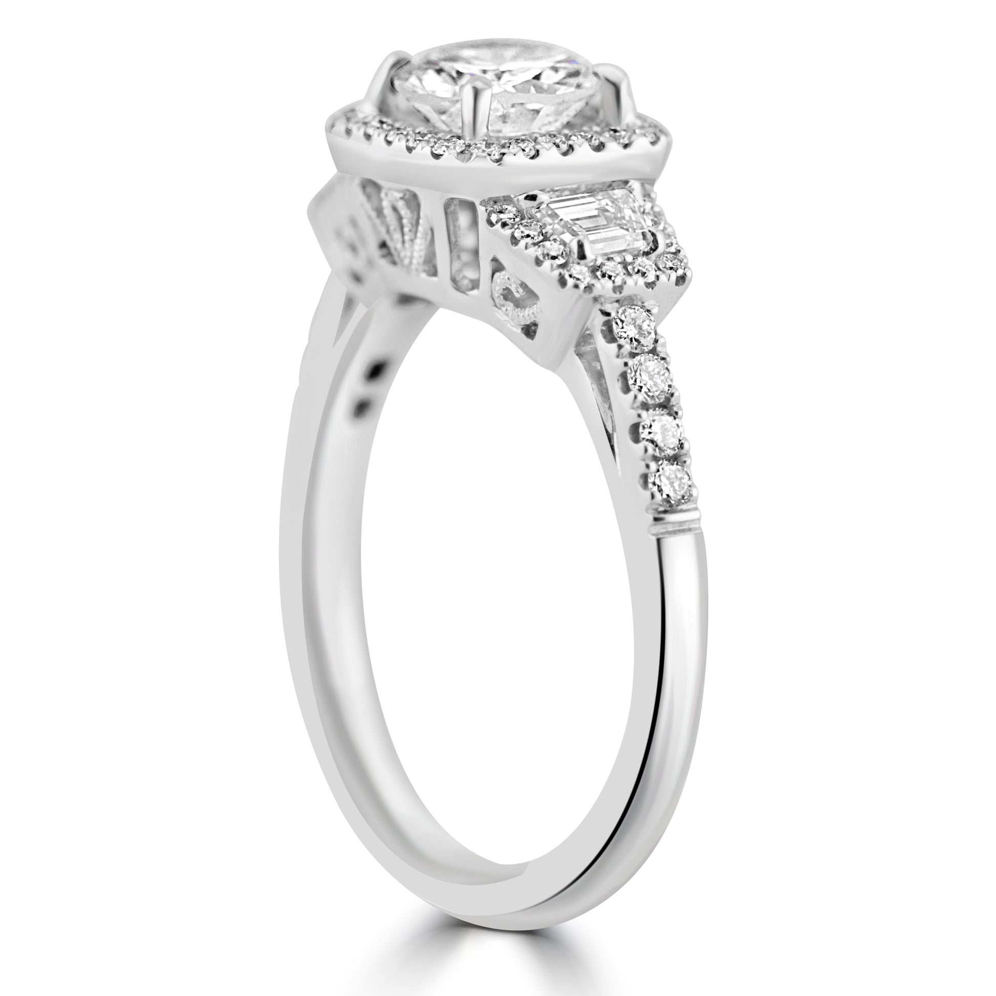 18k White Gold .90ct Round Diamond Halo Engagement Ring